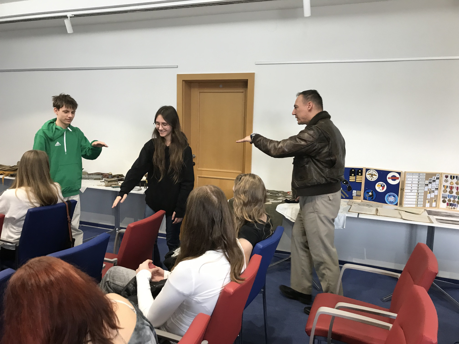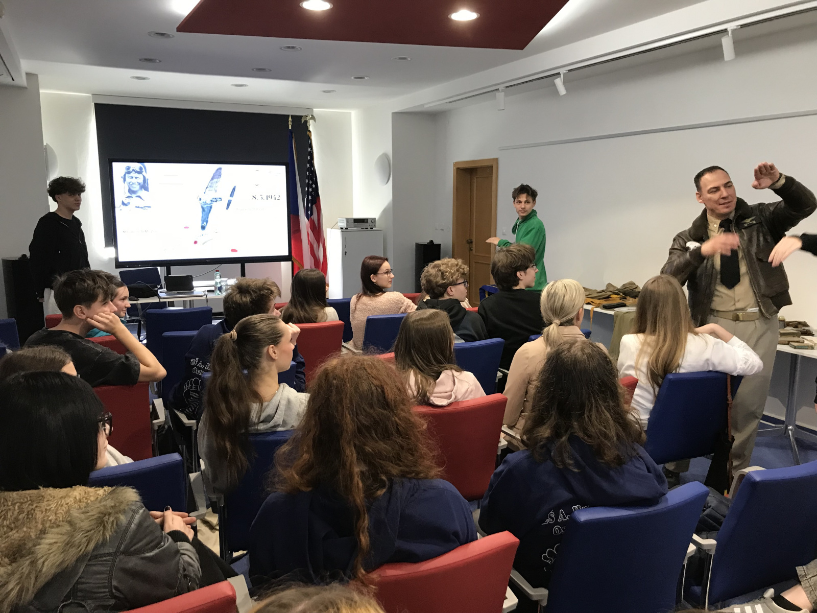 Třída CRO1 navštívila dne 20. 3. 2026 poutavou přednášku PhDr. Daniela Švece, která se věnovala osudům letců s českými kořeny působících v historii US Navy. Zaujaly zejména příběhy admirála Apolla Součka, který ve 30. letech překonal výškový rekord 13 km, a kapitána Stanleyho Vejtasy, jenž se stal leteckým esem během pouhé hodiny a půl. Přednáška přiblížila nejen jejich válečné úspěchy, ale i významné poválečné kariéry, včetně velení v Korejské válce a působení u jednotky TOPGUN. Součástí akce byla také výstava autentických předmětů z druhé světové války, které letci při své službě používali.