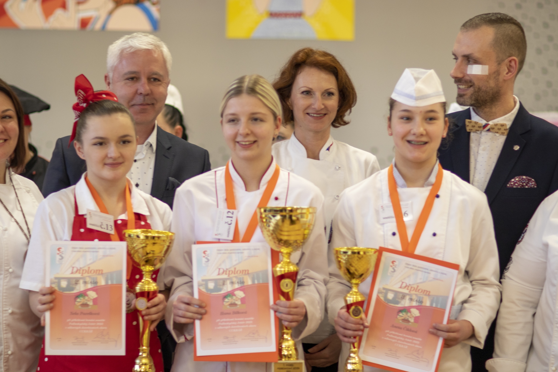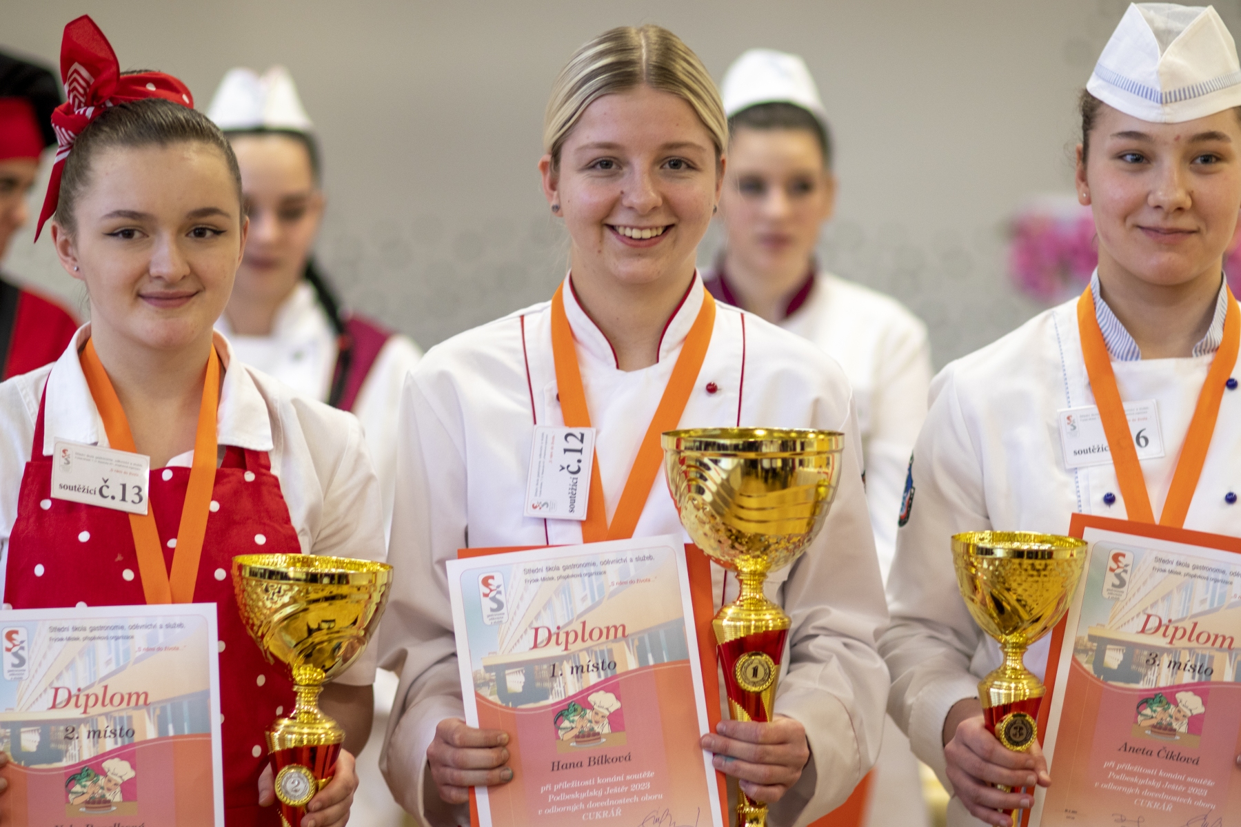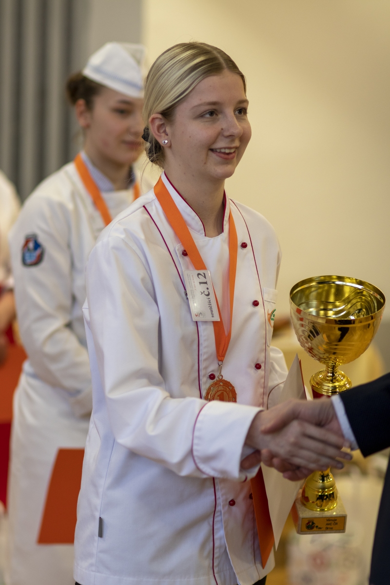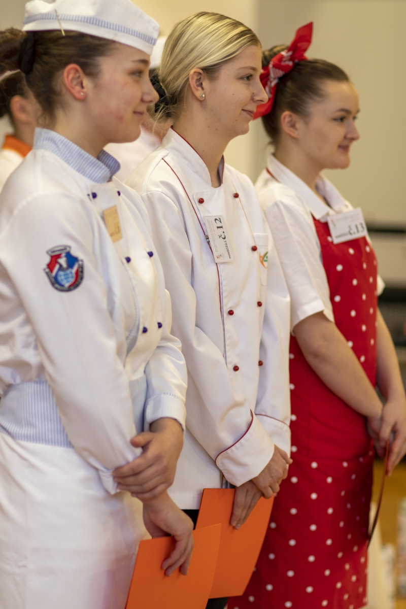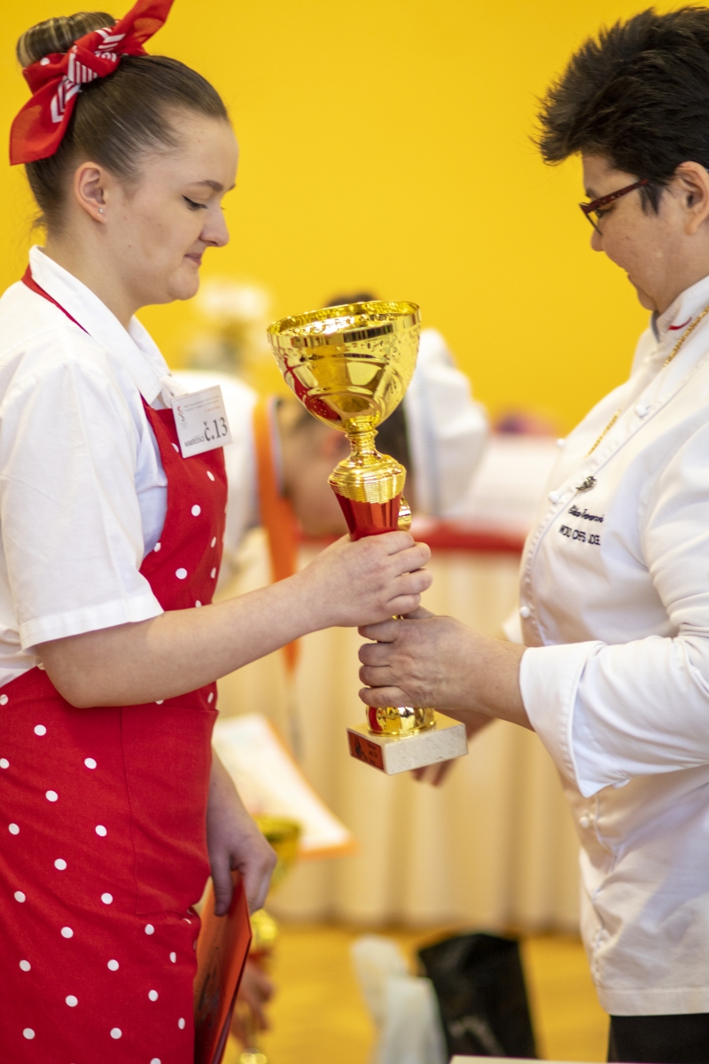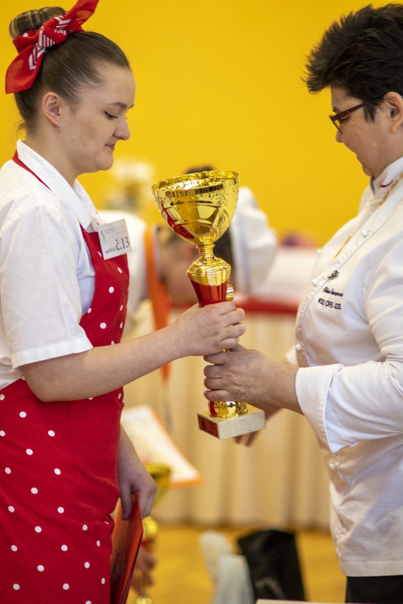 Hosté, žáci i soutěžící byli obslouženi našimi šikovnými číšníky. Cukráři a kuchaři kouzlili své lahůdky, školou zněla hudba a příjemnou atmosféru dokreslovala všudypřítomná práce aranžérů.