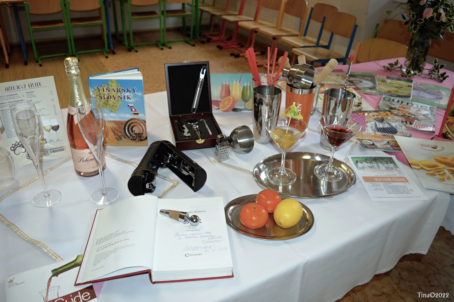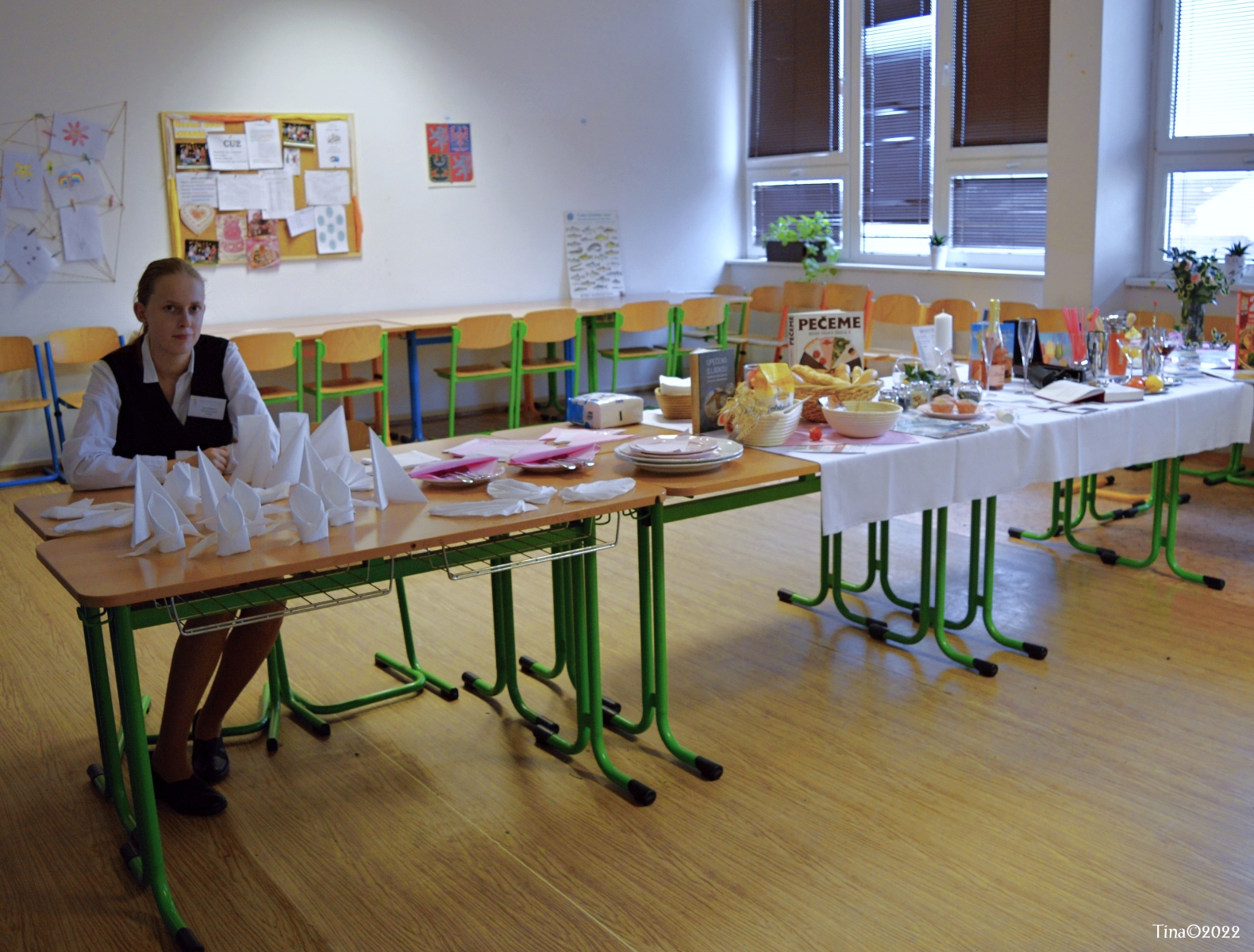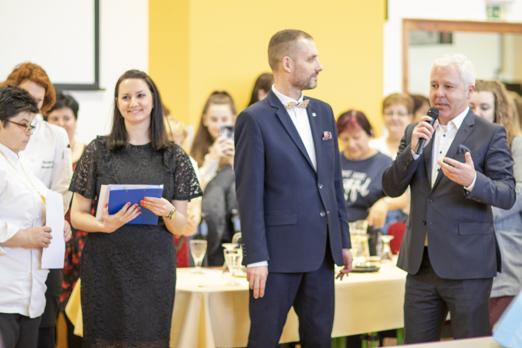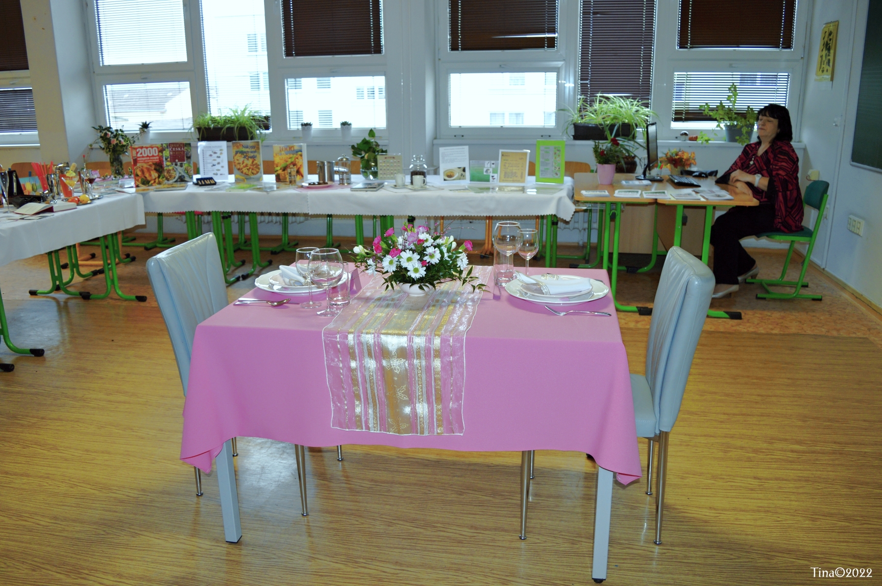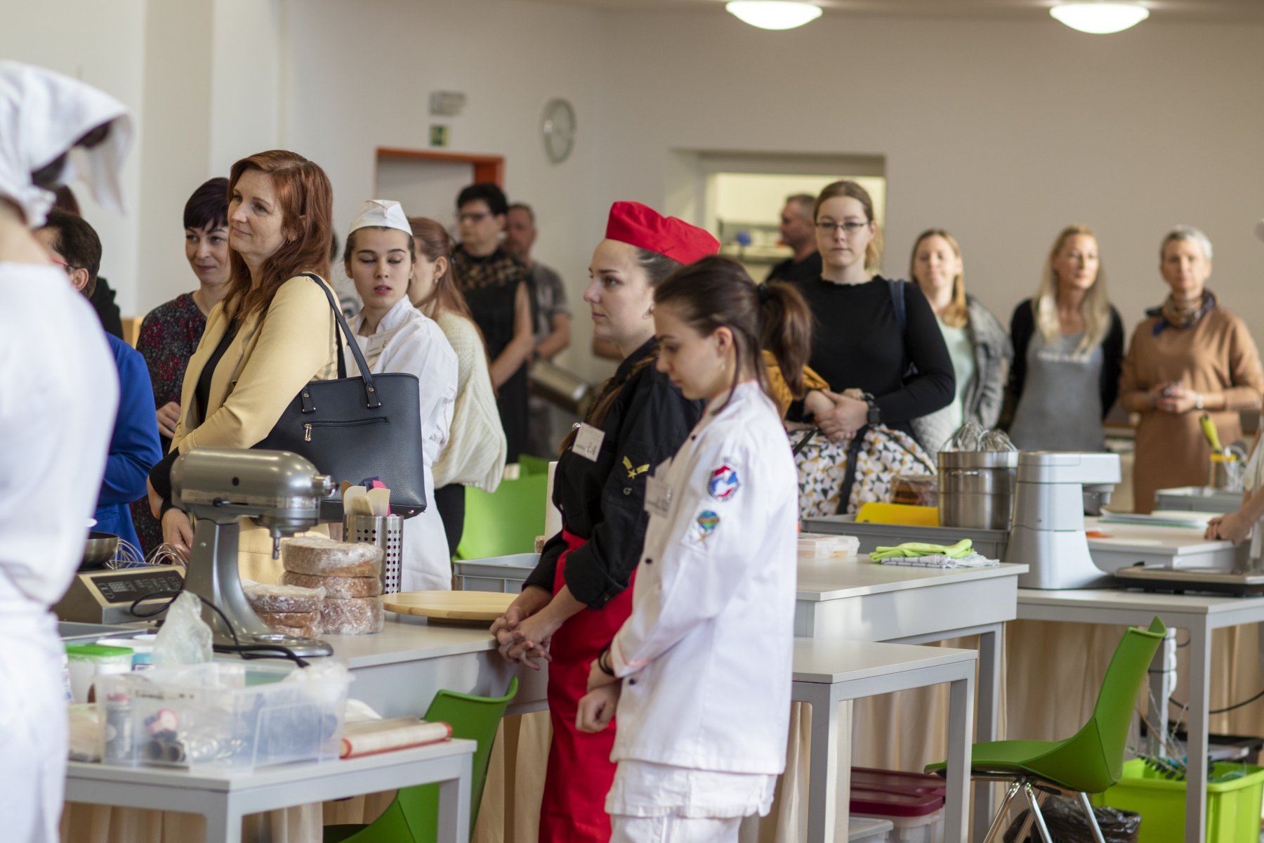 Hosté, žáci i soutěžící byli obslouženi našimi šikovnými číšníky. Cukráři a kuchaři kouzlili své lahůdky, školou zněla hudba a příjemnou atmosféru dokreslovala všudypřítomná práce aranžérů.
