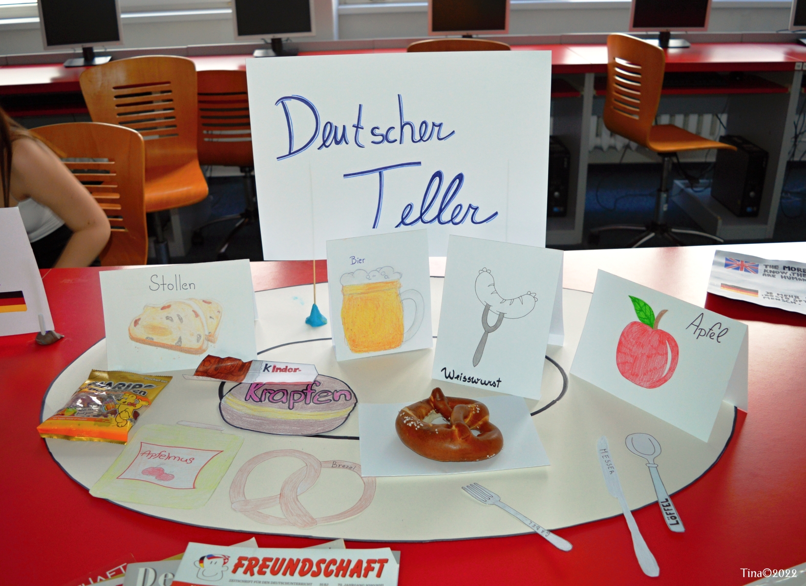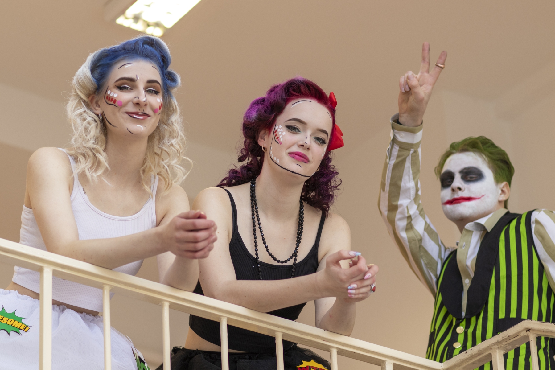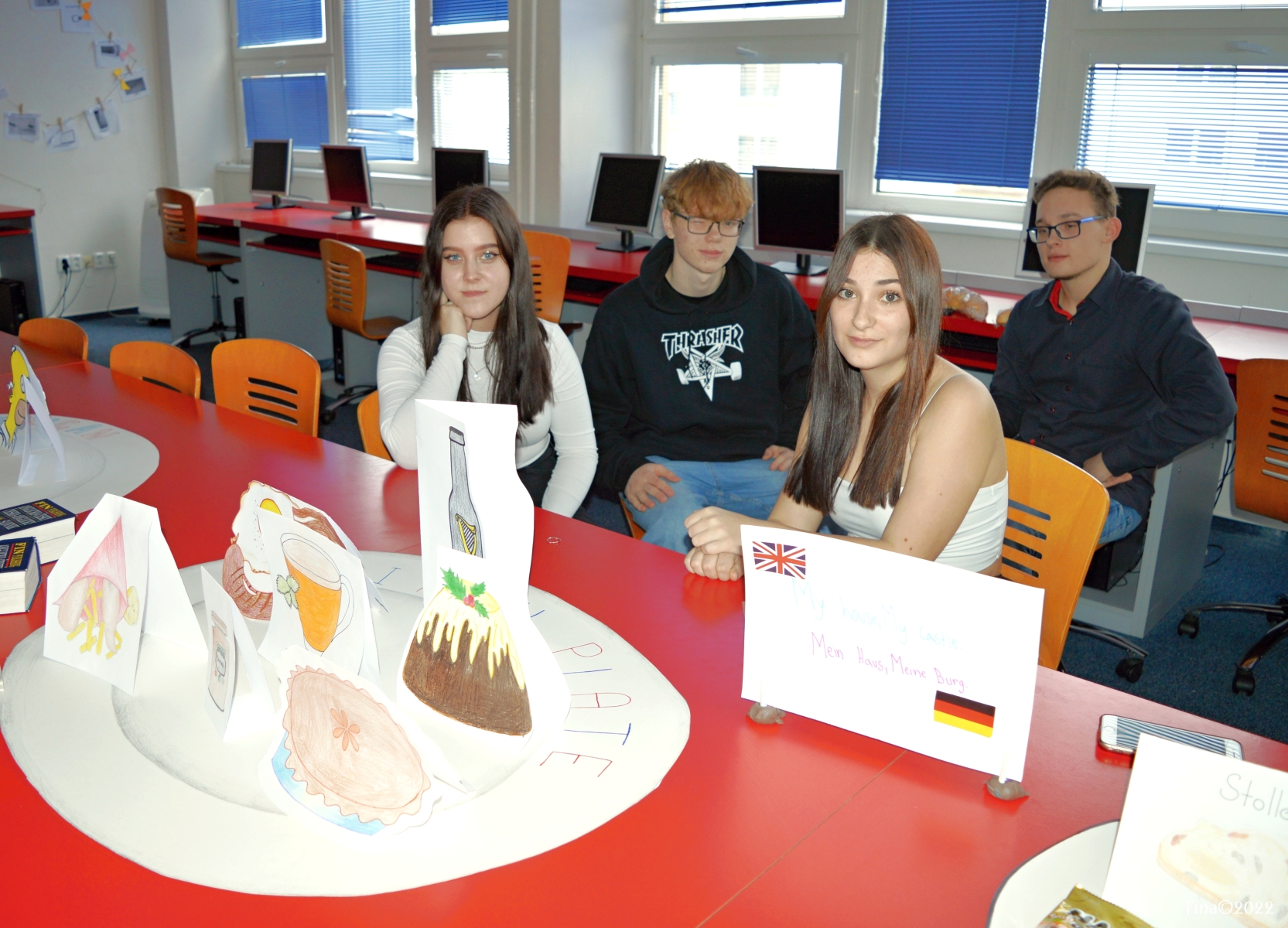 Prostřednictvím žáků oboru Kadeřník jsme se vrátili – v rámci POP ARTU – do krásných let rokenrolu. Ve stejném duchu byl zpracován design jídelny, ve které probíhala celostátní soutěž oboru Cukrář Podbeskydský Ještěr.