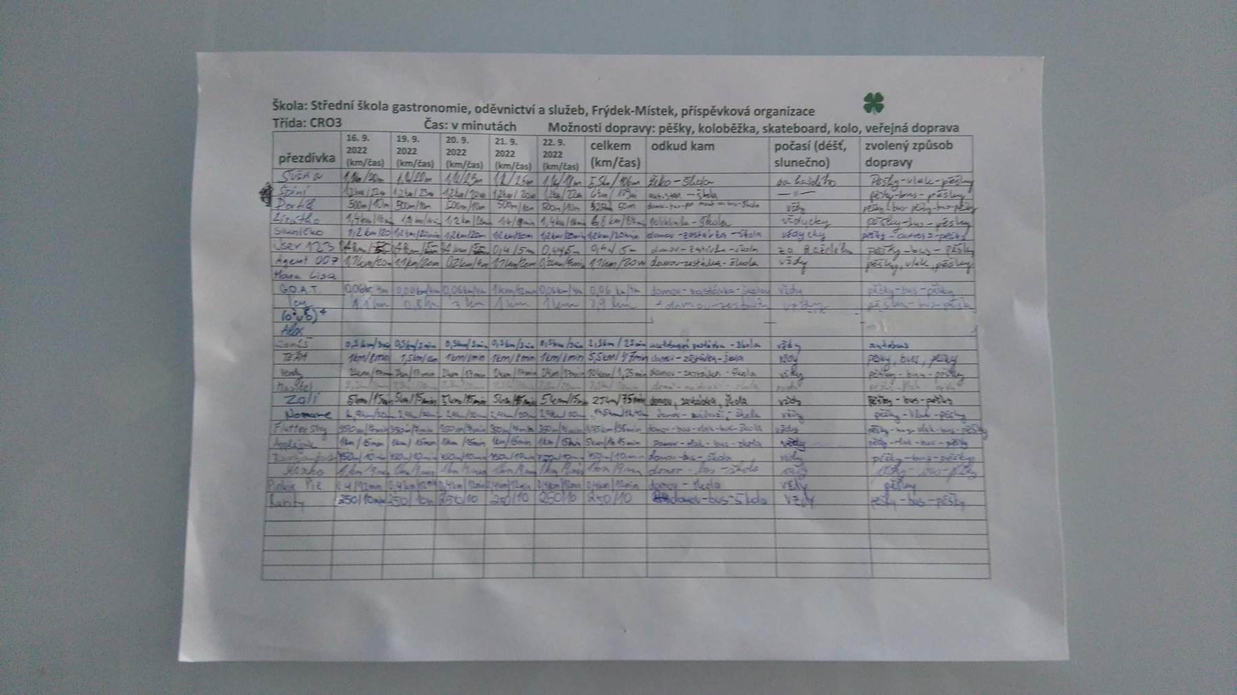 Žáci třídy CRO3 se v rámci „Evropského týdne mobility“, který se uskutečnil od 16. 9. 2022 do 22. 9. 2022, zapojili do projektu pod názvem „Pěšky do školy“. Naši žáci během akce spočítali, kolik kilometrů ujdou pěšky během cesty do školy. „Jsou to šikulky, kromě pěší chůze k cestě do školy využívají MHD, linkový autobus a případně vlak, což je pro životní prostředí optimální“, hodnotí akci jejich paní třídní učitelka Simona Krabcová.