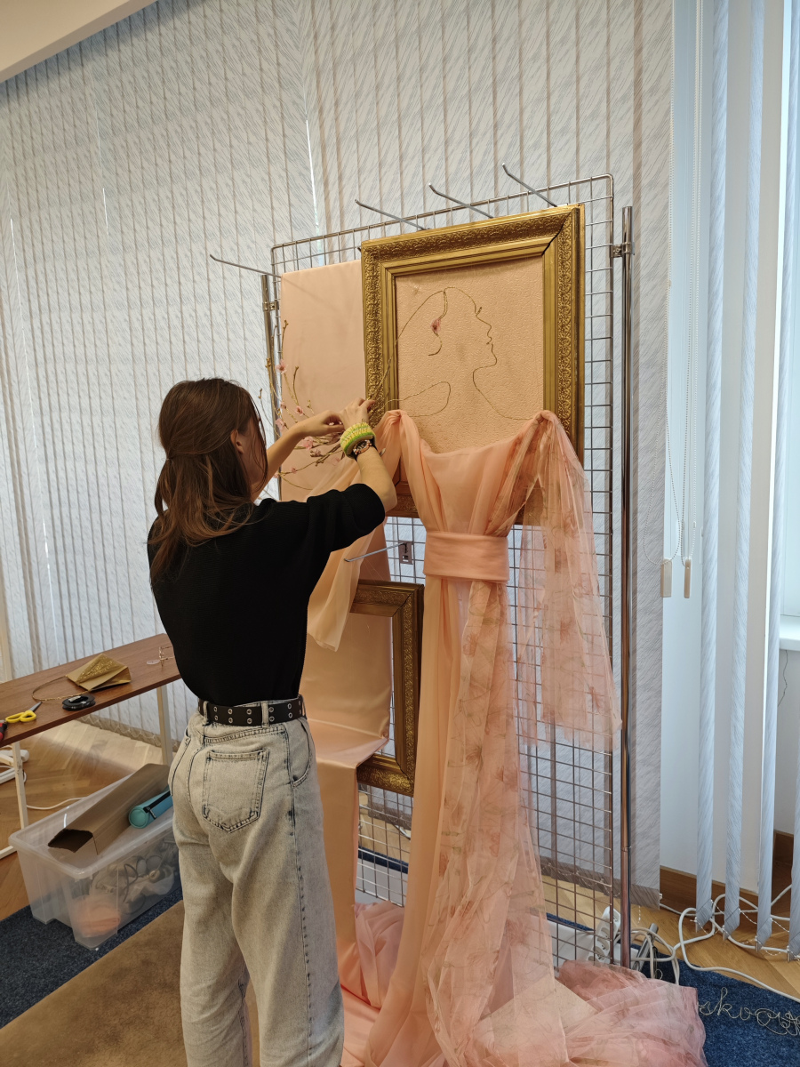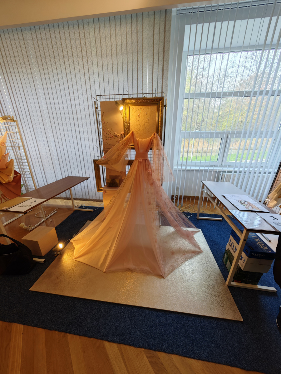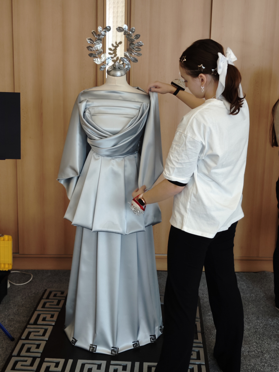 Špendlení na figurínu – 3. místo obsadila Anna Dřízgová, kterou připravovala na soutěž UOV Alena Kypúsová.
