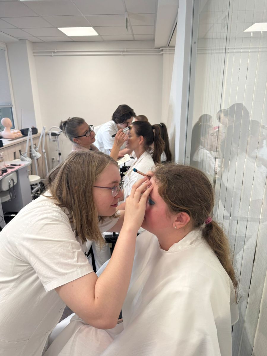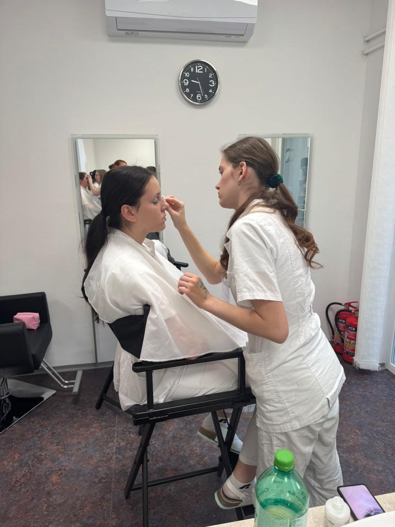 Naši studenti se vzdělávají s paní školitelkou Pavlínou Valičkovou v oblasti dekorativní kosmetiky.