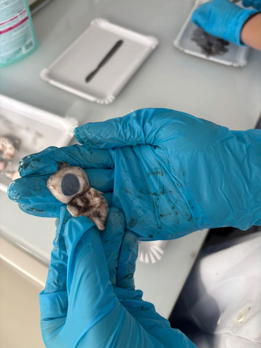 V pátek 14. 11. 2025 pitvali žáci třídy CRO1 (CR) oči prasete domácího. „Šlo jim to velmi dobře“, chválí žáky paní učitelka Jana Lisníková.