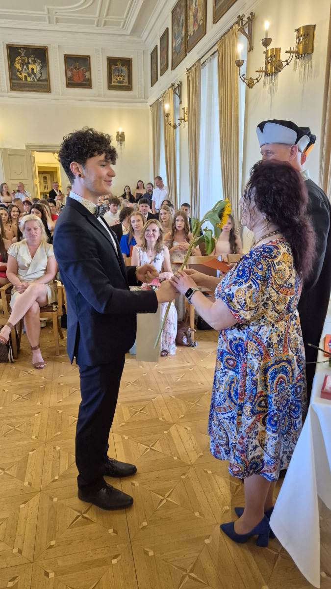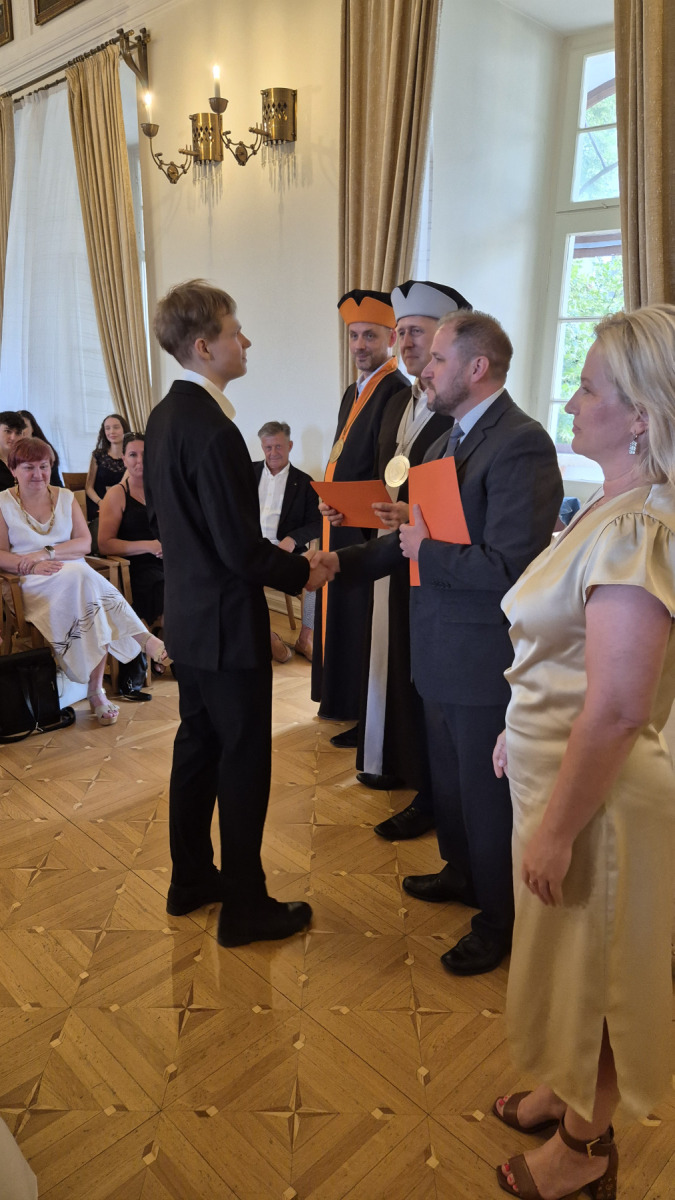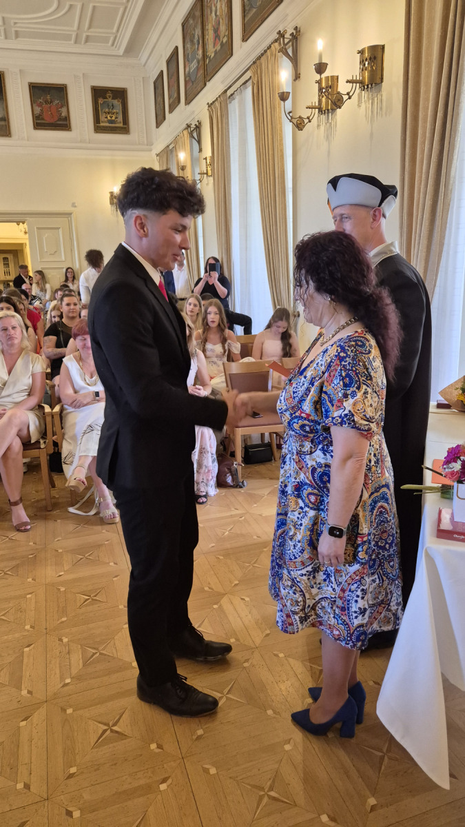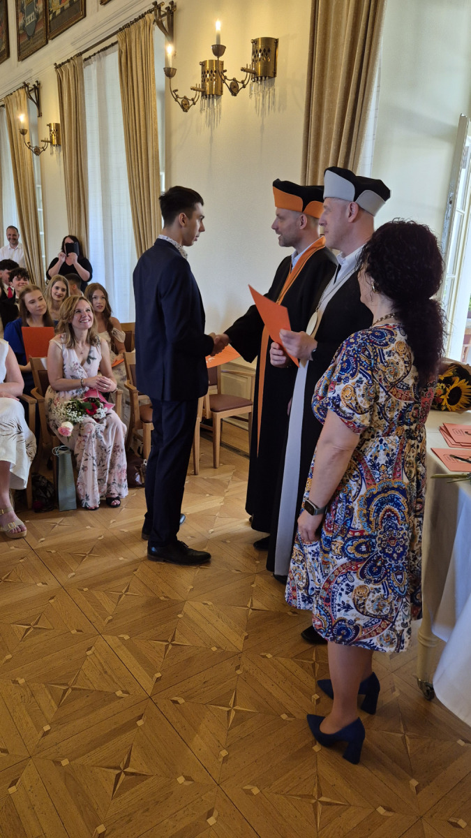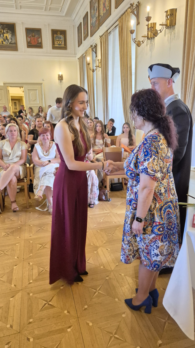 Slavnostní zakončení letošního školního roku proběhlo dne ve středu 25. června 2025 v 8:45 hodin v Rytířském sále zámku ve Frýdku. Děkujeme všem zúčastněným studentům a žákům za jejich píli a snahu při studiu. Poděkování patří také jejich učitelům a rodičům za trpělivost a ochotu naslouchat. A v neposlední řadě děkujeme také vedení školy.