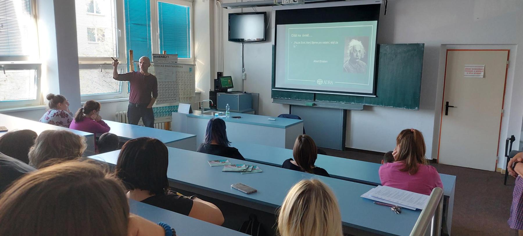Dne 19.10.2022  se žáci  tříd CRO2, CRO3, KSG2 a KSG3  účastnili přednášky Staň se dobrovolníkem v Adře.