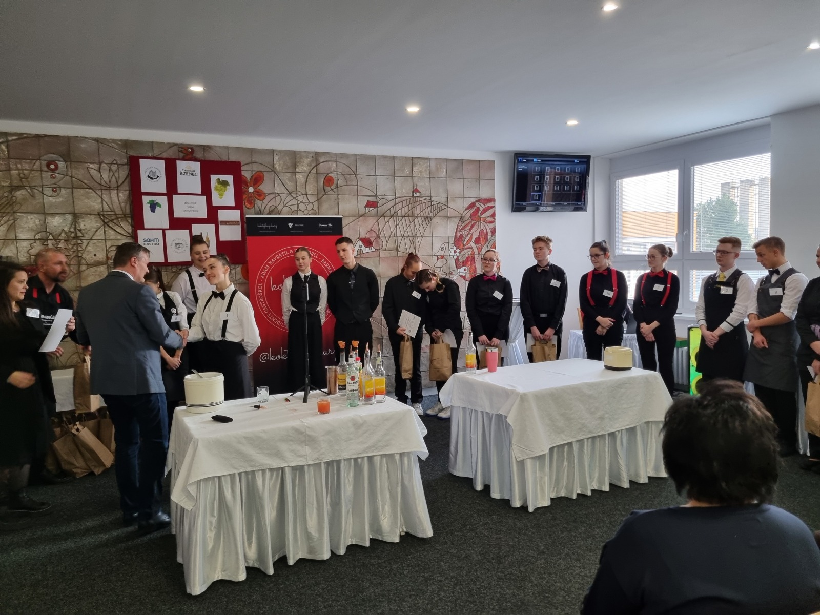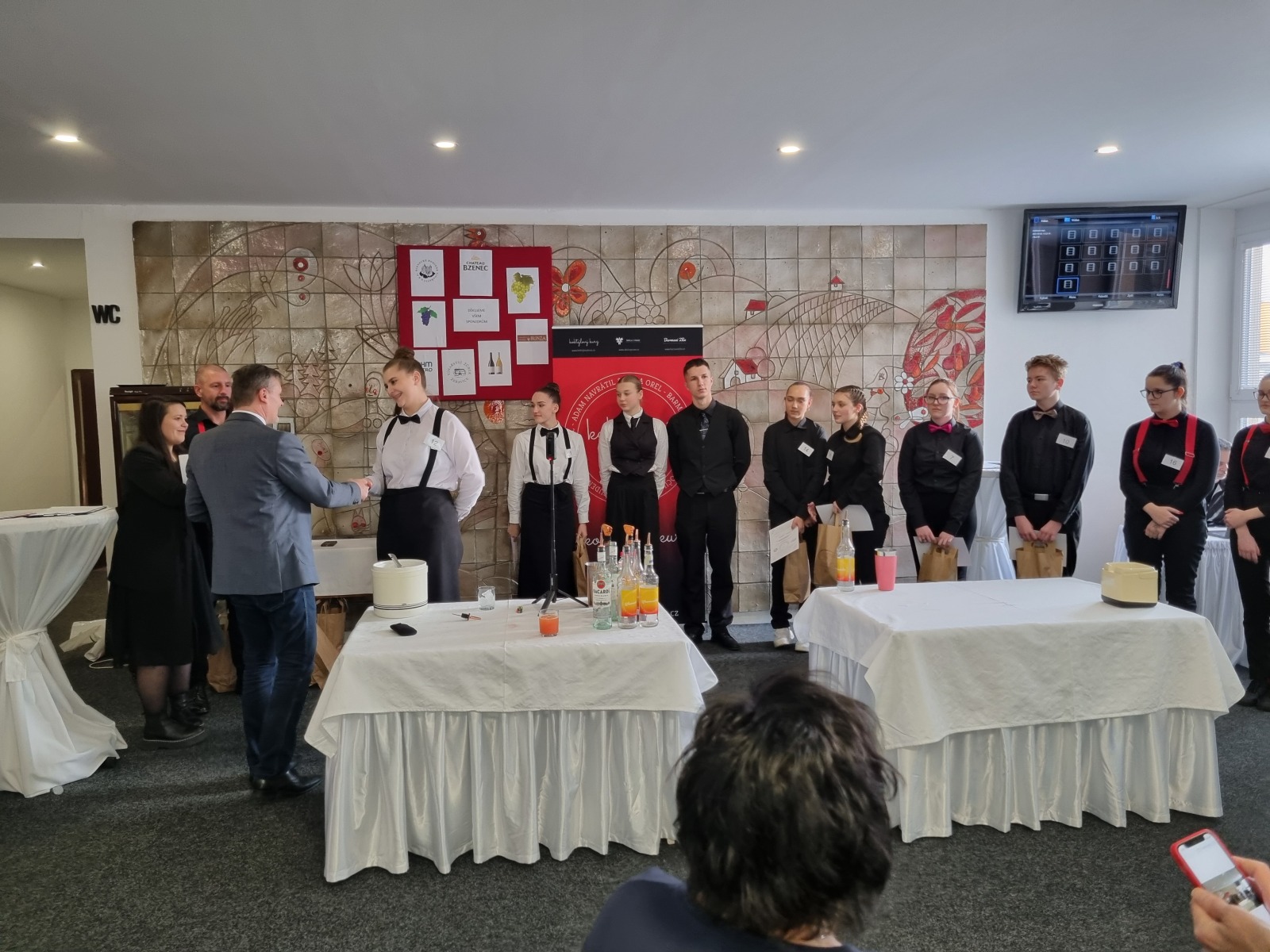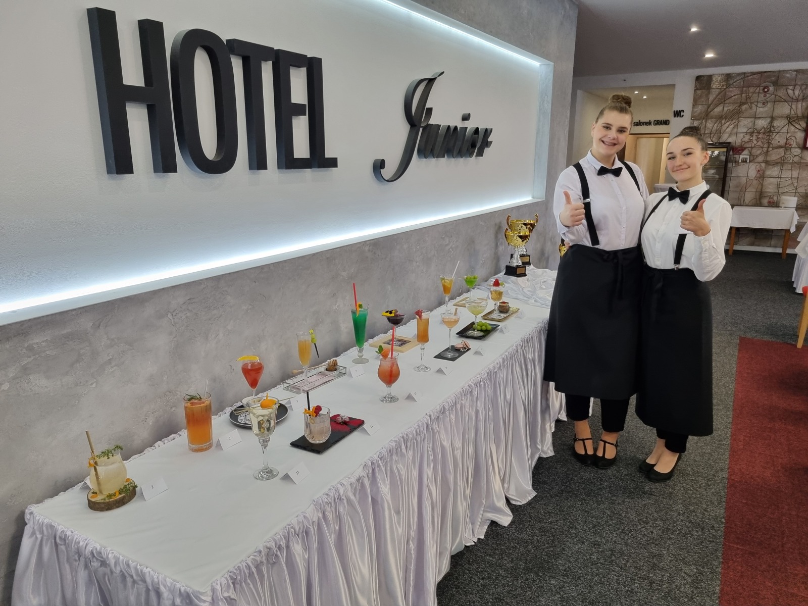 Naši školu reprezentovaly žákyně třetího ročníku oboru Gastronomické služby Lenka Čežáková, která vybojovala krásné 4.místo ( o pouhý 1 bod za místem třetím ) a Ema Wostrá, která skončila na 7.místě. Obě žákyně předvedly pěknou barmanskou práci a zaslouží si tak velké poděkování za vzornou reprezentaci školy.