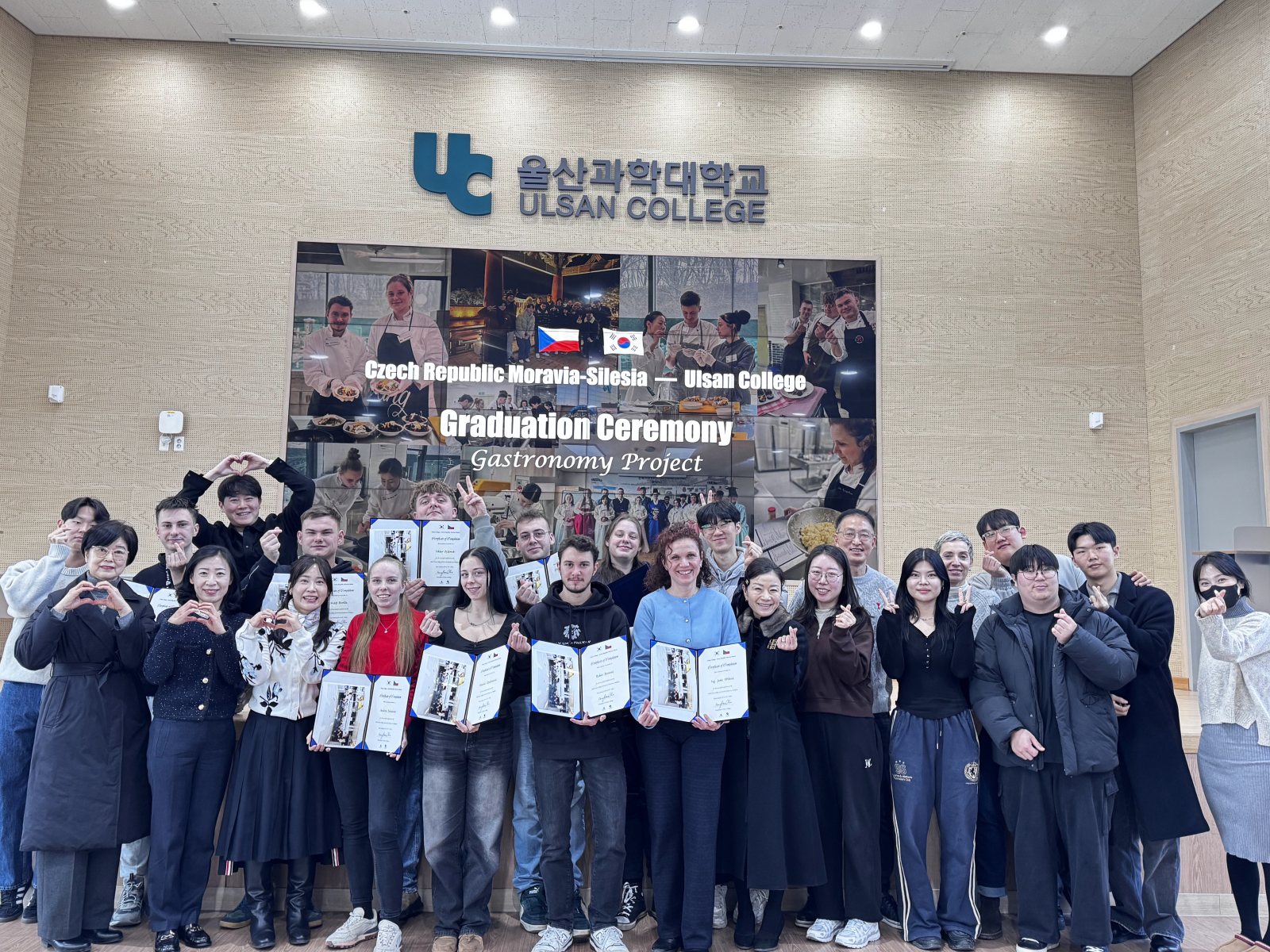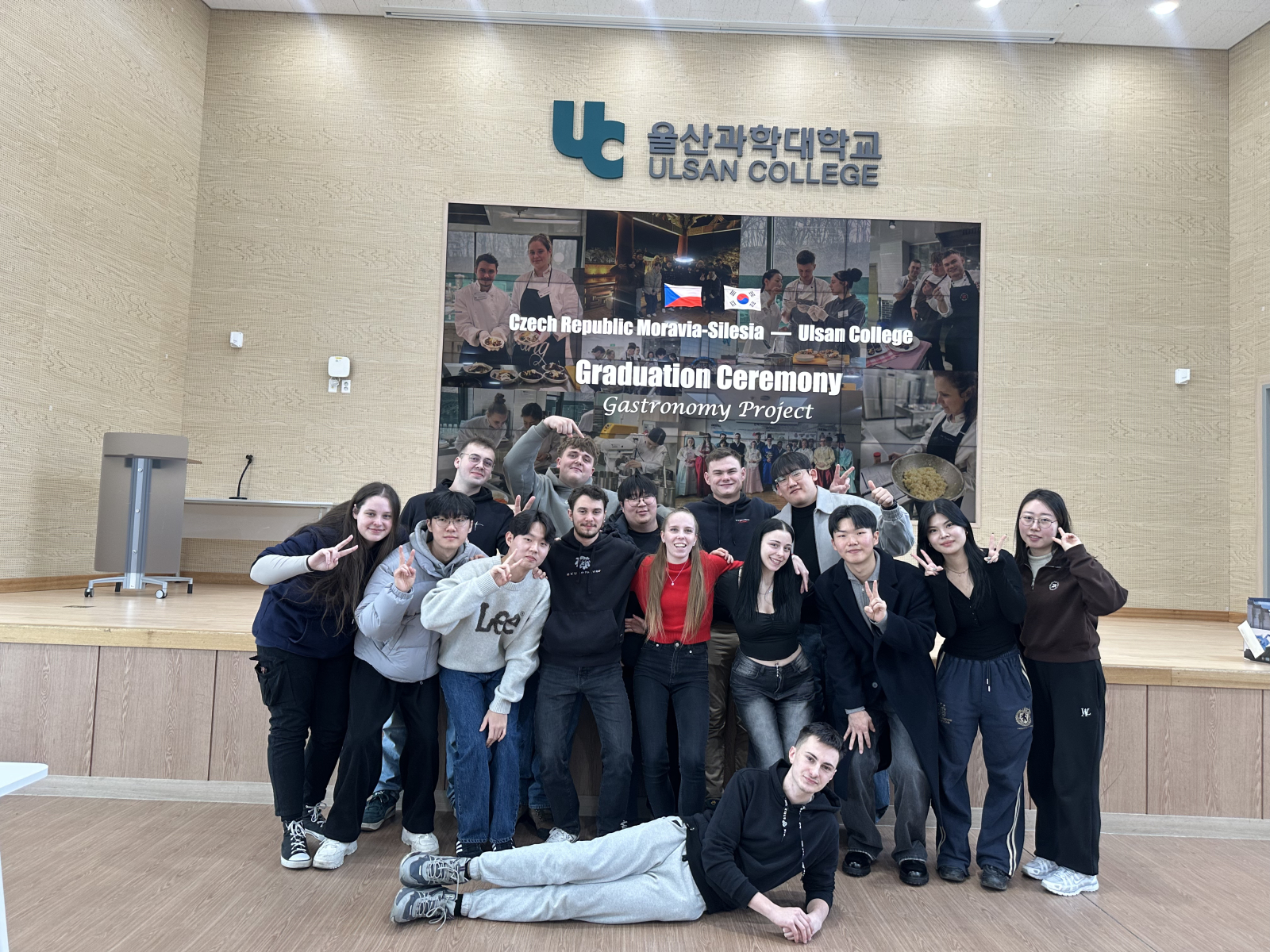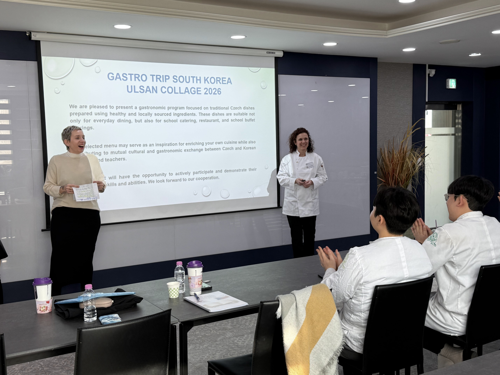 Na přelomu ledna a února se skupina studentů gastronomických oborů z Moravskoslezského kraje vydala na odbornou stáž do jihokorejského Ulsanu. Naše škola u toho nechyběla – mezi účastníky byly také naše studentky Andrea a Antonie, pro které se tato zkušenost stala významným krokem v jejich odborném i osobním rozvoji.