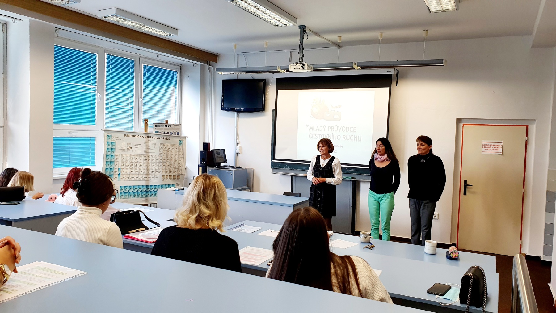 Po téměř dvouletém omezení distanční výukou se v letošním školním roce opět pod vedením učitelky Anny Faldynové studentky 3. ročníku oboru cestovní ruch poctivě připravovaly na soutěž „Mladý průvodce CR“. V soutěžních dvojicích vytvořily a předvedly své prezentace produktu cestovní kanceláře. Konkrétně třídenního zájezdu na jedno ze zadaných témat.
